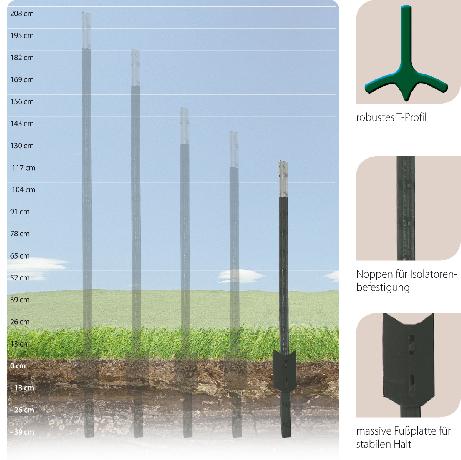 Leicht einzuschlagende, qualitativ hochwertige T-Pfosten in unterschiedlichen Längen für den... mehr